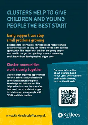 Kirklees schools are organised into 17 local clusters. These clusters strengthen early identification, improve collaboration and allow schools to access shared expertise and resources. By working together, schools can spot emerging needs sooner and provide support more quickly.